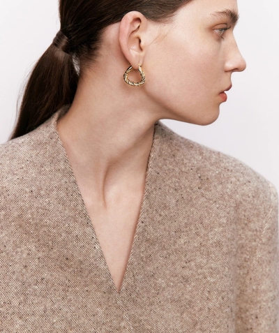 Tie Back Relaxed Knit Shirt in Beige