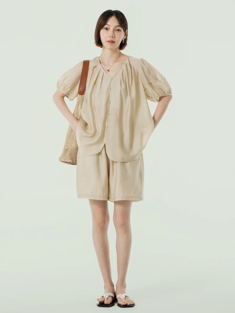 Crepe Blouson Top + Shorts Set