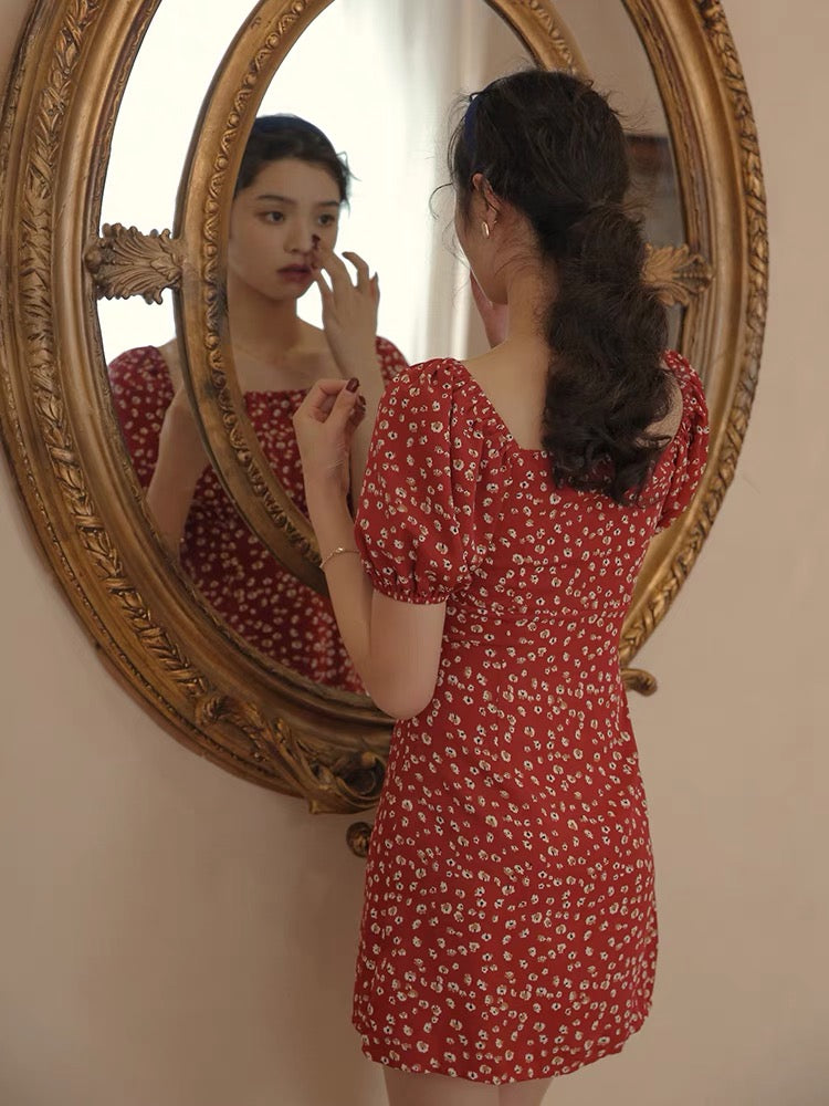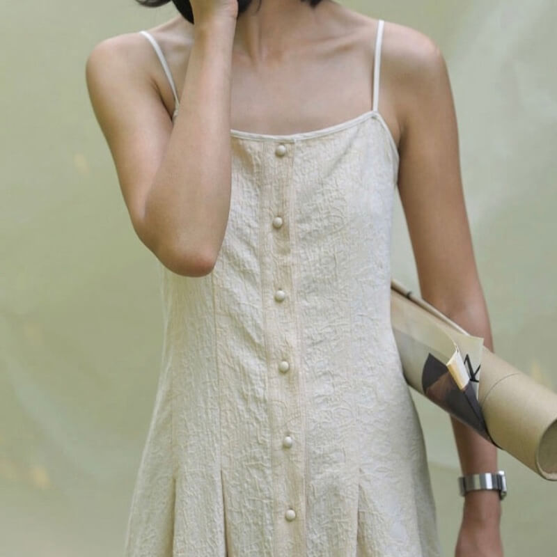 Floral Flutter Strap Slit Dress in White