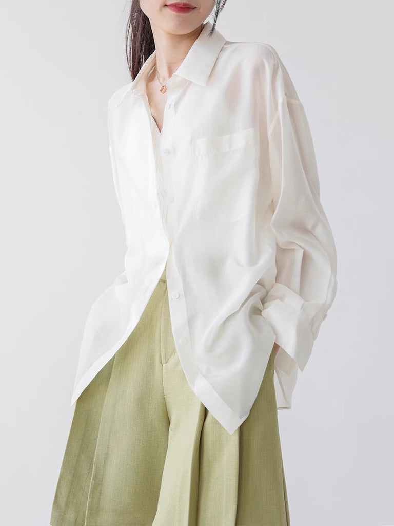 Classic Oversized Tencel Pocket Shirt in White
